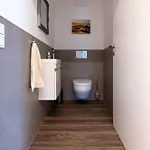 В ванной есть душевая кабина открытого типа и отдельный туалет.